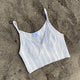 Es cortito, de tirante fino, escote en pico en la parte de delante y recto en la espalda. El tejido es de punto elástico así que además de ser muy cómodo se adatará perfectamente a tu cuerpo.